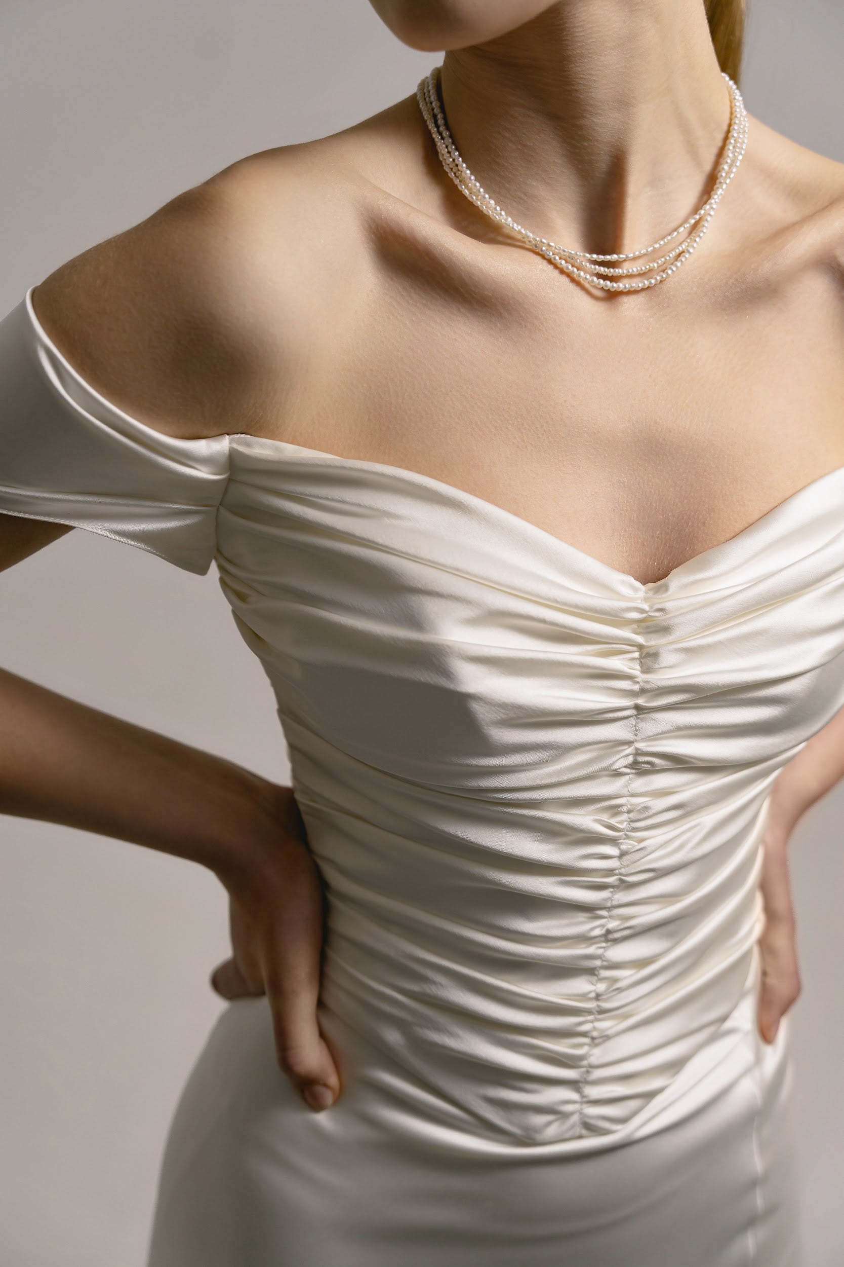 A bold statement piece for the unconventional bride who refuses to play it safe. This daring two-piece ensemble combines a sculpted corset with an elegant skirt, crafted from luxurious satin that demands attention. The fitted bodice cinches at the waist while intricate lace adorns the back, creating an intriguing contrast between structure and sensuality. Perfect for weddings, engagements, or rehearsal dinners where you want to break tradition. Transform the look instantly with strategic accessories to match your fearless vision.